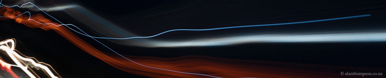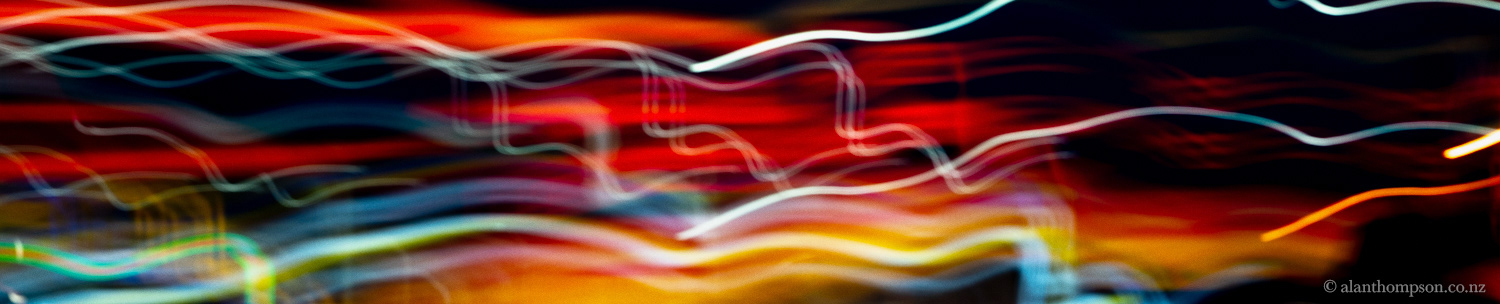 This is a new project in progress, it started in 2018 in the UK. It's an off shoot of my interest in Orphism. It was not until 2020 while I was in Hamner Springs that I found what I really wanted in the images. I was doing panoramas and it occurred tome that a panorama crop would be quite interesting. In the space of 45 minutes they were done. Im working now on developing them in Photoshop CC. I do not delete images as I have found that quite often its not until much later you find out what you were trying to capture and also more skill in how to develop the look you have in mind. Each image is 3.7m wide and 0.8m high, at this stage there are about 44 images.
